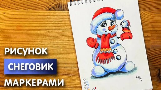 Как нарисовать снеговика карандашом и скетч маркерами | Рисунок для детей, поэтапно и легко