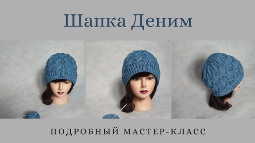 Шапка "Деним" спицами/ Шапка унисекс/ Подробный МК/ #вязаниедляначинающих