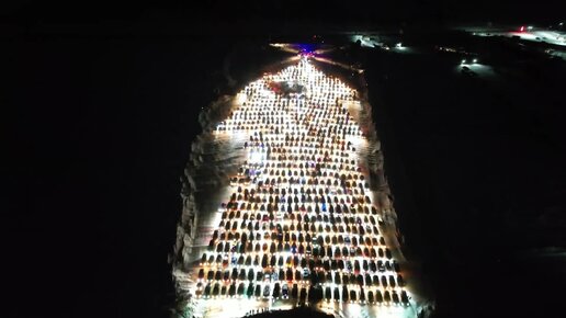 Новогодний рекорд России в Красноярске: 800 Дедов Морозов-автовладельцев развернули огромную ёлку! Почетное место досталось полиции