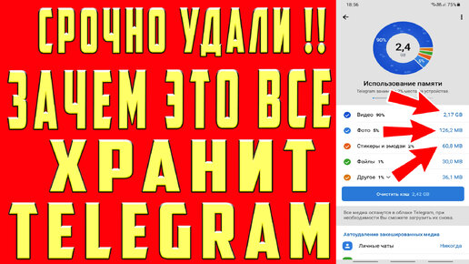Освободил 45,2 ГБ ПАМЯТИ и КЭШ на АНДРОИД и АЙФОНЕ за 1 Минуту и ОФИГЕЛ! ЗАЧЕМ ТЕЛЕГРАММ ВСЕ ЭТО ХРАНИТ ? ЧТО СОБИРАЕТ о НАС ТЕЛЕГРАММ ?