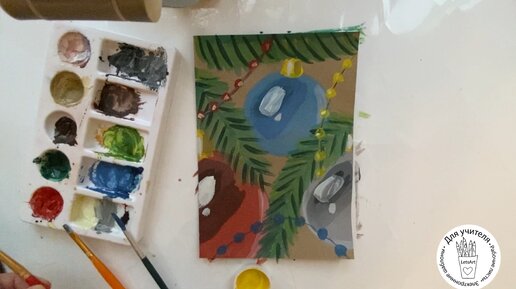 Новогодняя открытка гуашью. Простые уроки ИЗО для детей в начальной школе