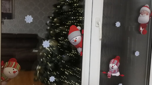 Снеговики тоже хотят на елку. Новогодние наклейки на окно для декора интерьера