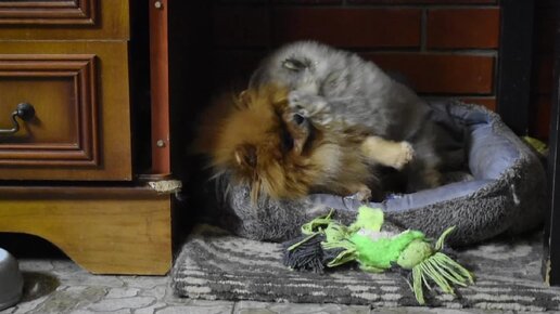 Самая терпеливая и заботливая шпицемама в мире! Милота зашкаливает.