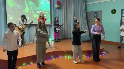 Ярче звёзд! Вот так проходит новогодняя дискотека в нашей школе. Катюня, с гитарой в белой кофточке.