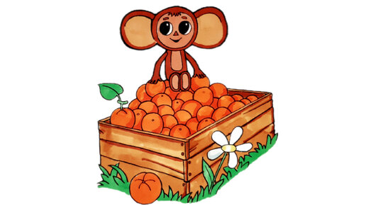 Как нарисовать ЧЕБУРАШКУ с апельсинами/раскраска