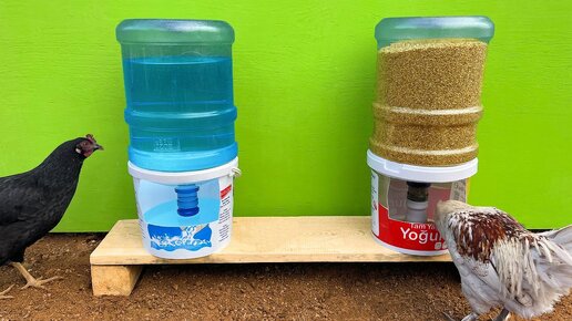 Супер идея: сделать практичную кормушку и поилку для кур из бутылочки и ведра