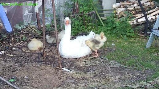 Собираю гусей по всему огороду. У Фимочки есть гусенок - маменькин сынок!