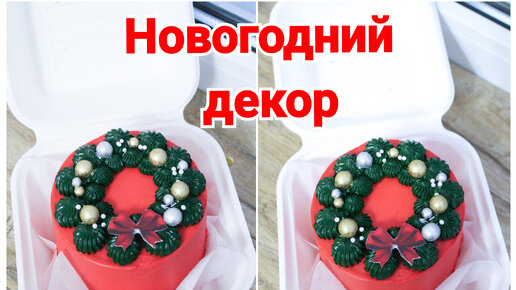 Новогодний венок 🎀 Простой декор для любого торта.