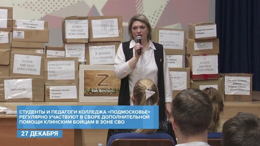 Клин. Студенты колледжа "Подмосковье" передали гуманитарную помощь в зону СВО