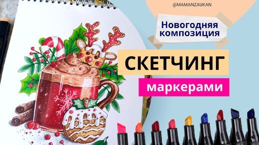 Новогодняя композиция, как нарисовать маркерами