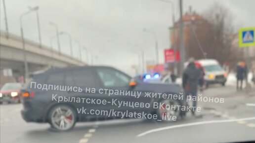 На пересечении дублера Рублевского шоссе и Рубежного проезда в Крылатском в результате ДТП машина вылетела на тротуар и сбила пешехода 🚨