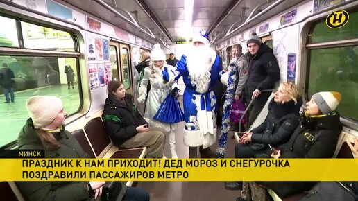 Дед Мороз и Снегурочка спустились в минскую подземку, чтобы поздравить пассажиров