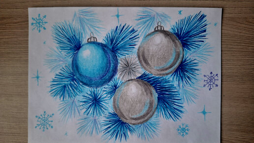 Как нарисовать новогодние шары карандашами и фломастерами - рисуем простую новогоднюю открытку