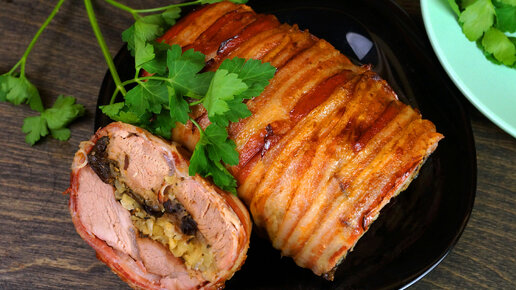 Свиная вырезка запечённая с черносливом и яблоком.
