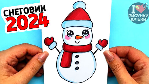Как нарисовать Снеговика на Новый Год 2024 | Новогодние Рисунки Юльки для ОТКРЫТКИ