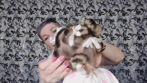 АСМР завивка волос для внучки, шёпот, расчешем.