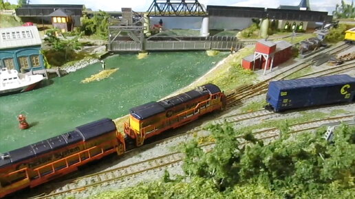 Макет ЖД собран внутри стола. Модели железной дороги. Следование по перегону. (1:160)