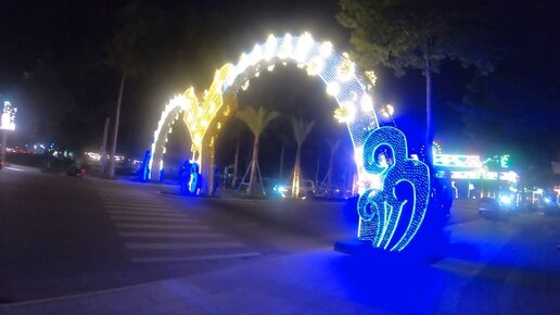 Вьетнам: ночной Phan Rang, главная площадь, ночую на пляже [19 сентября 2023]