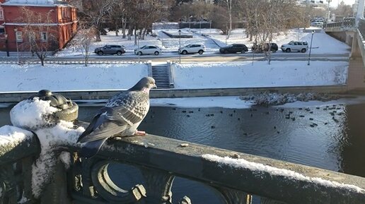 20231228 Лыжник и велосипедист Александровский мост Утки Голуби улица Ленина река Орлик город Орёл г