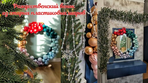 Сделала шикорный венок из старых пластиковых елочных шаров