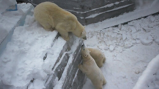Герда чудесно устроилась в сугробе на айсберге, но медвежата просят маму вернуться.