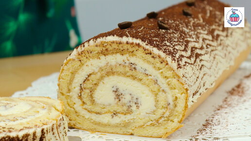 Бисквитный рулет "Тирамису"🍰 Удачный бисквит для рулетов не ломается, легко сворачивается!