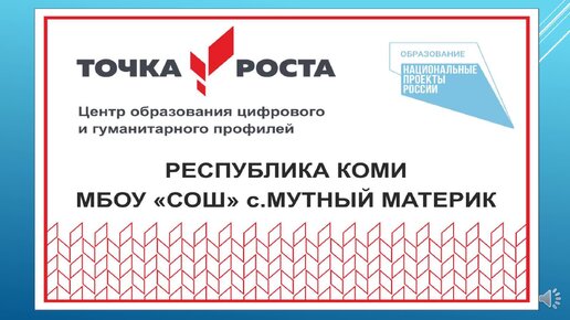 Точка роста. МБОУ «СОШ» с. Мутный Материк МО ГО «Усинск»