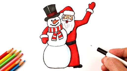 Как нарисовать Деда Мороза и Снеговика