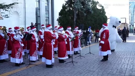 Оркестр Дедов Морозов встречают поезда в Симферополе.