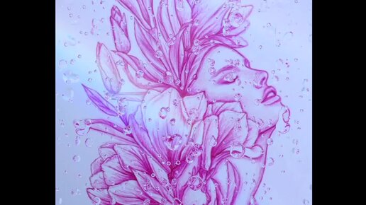 Рисунок на бумаге линером и карандашом образ Девушка Цветок