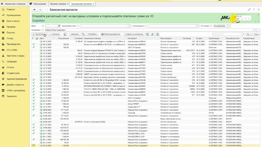 Разнесение платежей по счетам