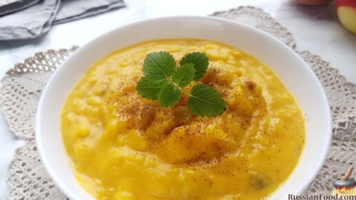 Яркая каша из тыквы с рисом и яблоками. Тыквенная каша на топлёном молоке