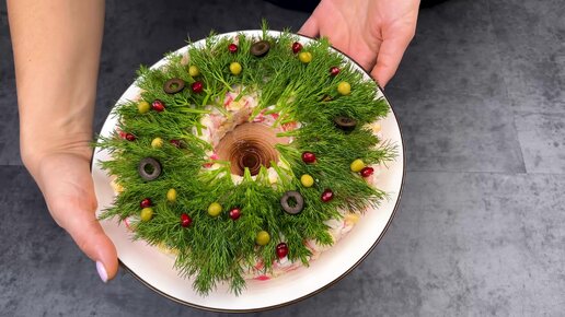 Хит Этого Нового года! 🎄Новогодний салат «Венок» с крабовыми палочками!!🎄