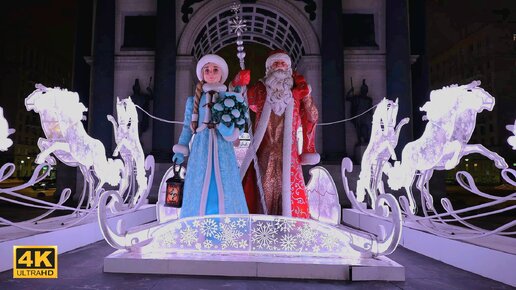 Ночная прогулка по Поклонной горе зимой. Новогодняя Москва