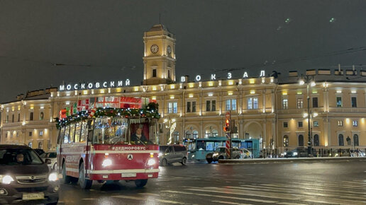 ДедМоробус ЛАЗ-695Н №Р989ВМ поворачивает с Лиговского на Невский проспекты, дек.2023г.