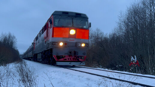 "Приветливый!" Тепловоз ТЭП70 с пасс.поездом на кануне нового года на перегоне, дек.2022г.