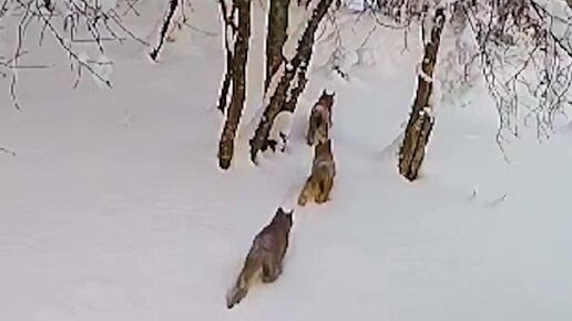 «След в след, хвост в хвост». В сети умиляются на рысь с тремя котятами, попавшую в кадр видеокамеры под Приозерском