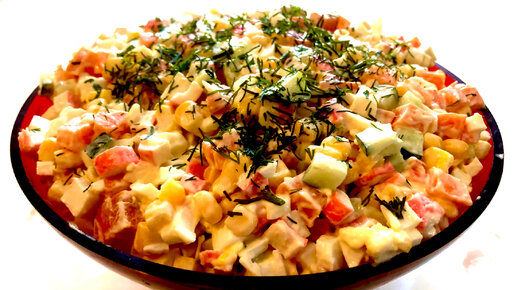 Салат из Крабовых палочек с Огурцом и Кукурузой.