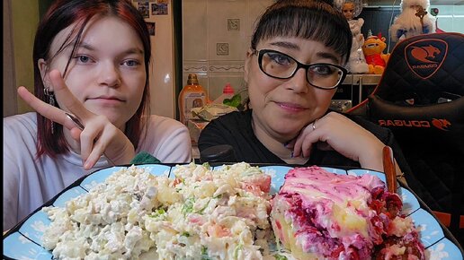 Новогодний мукбанг | Салат Столичный,Метелица,Селёдка под шубой. Кое какие ответы на вопросы... Обжорчик