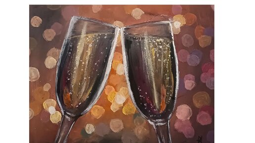 Праздничный звон новогодних бокалов. Серия - новогодние открытки гуашью