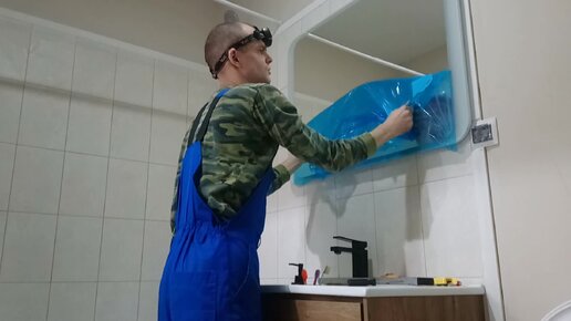 Сантехника и электрика. Монтаж зеркала с подсветкой, замена унитаза, замена раковины типа "Тюльпан" на раковину с тумбой в ванной комнате.