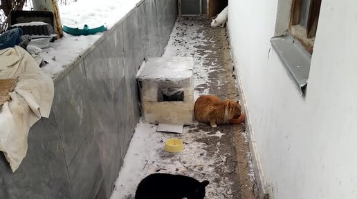 Бездомыши... Тяжело им выживать зимой. Это часть из тех, которых я кормлю.