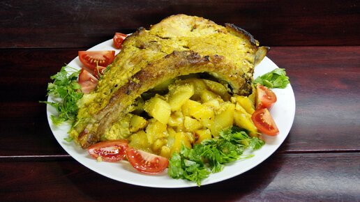 Делаем свиные рёбра в гранатово-чесночном соусе с картофелем в рукаве