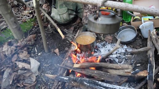 Прогулка в лес. Как делаем кострище. Розжиг огнивом. Готовим сухпаёк и завариваем чай