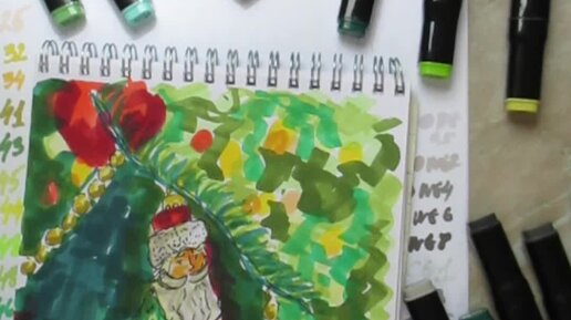 Урок рисования скетчинг маркерами - новогодняя игрушка - Дед Мороз С Новым Годом!