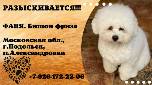 Пропала собака! ФАНЯ, бишон фризе, Московская обл., г.Подольск, п.Александровка