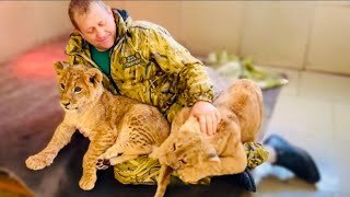 Львята Асада и ШерХан от радости просто БРОСИЛИСЬ на папу Олега и повалили его на пол!