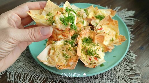 Быстрая красивая закуска: Тарталетки с лавашом и сладким перцем