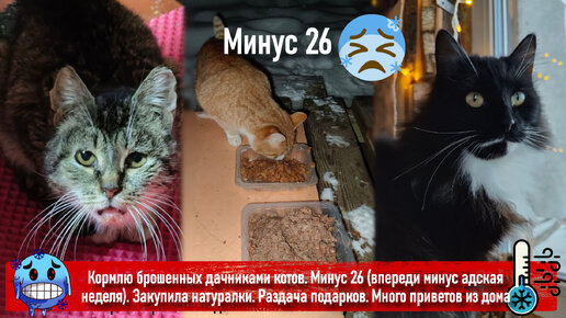 Кормлю брошенных дачниками котов. Минус 26 (впереди минус адская неделя). Закупила натуралки. Раздача подарков. Много приветов из дома