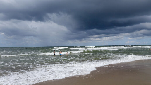 Море, пляж перед дождем. Балтийское море. Поселок Янтарный, пляж, 19 июля 2021 г.